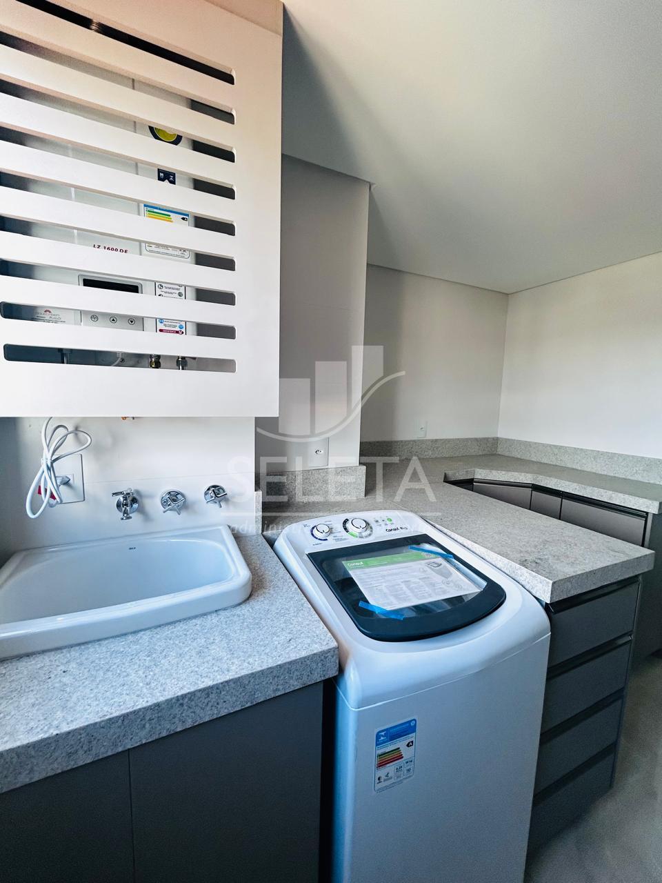 Lavanderia com máquina de lavar e tanque